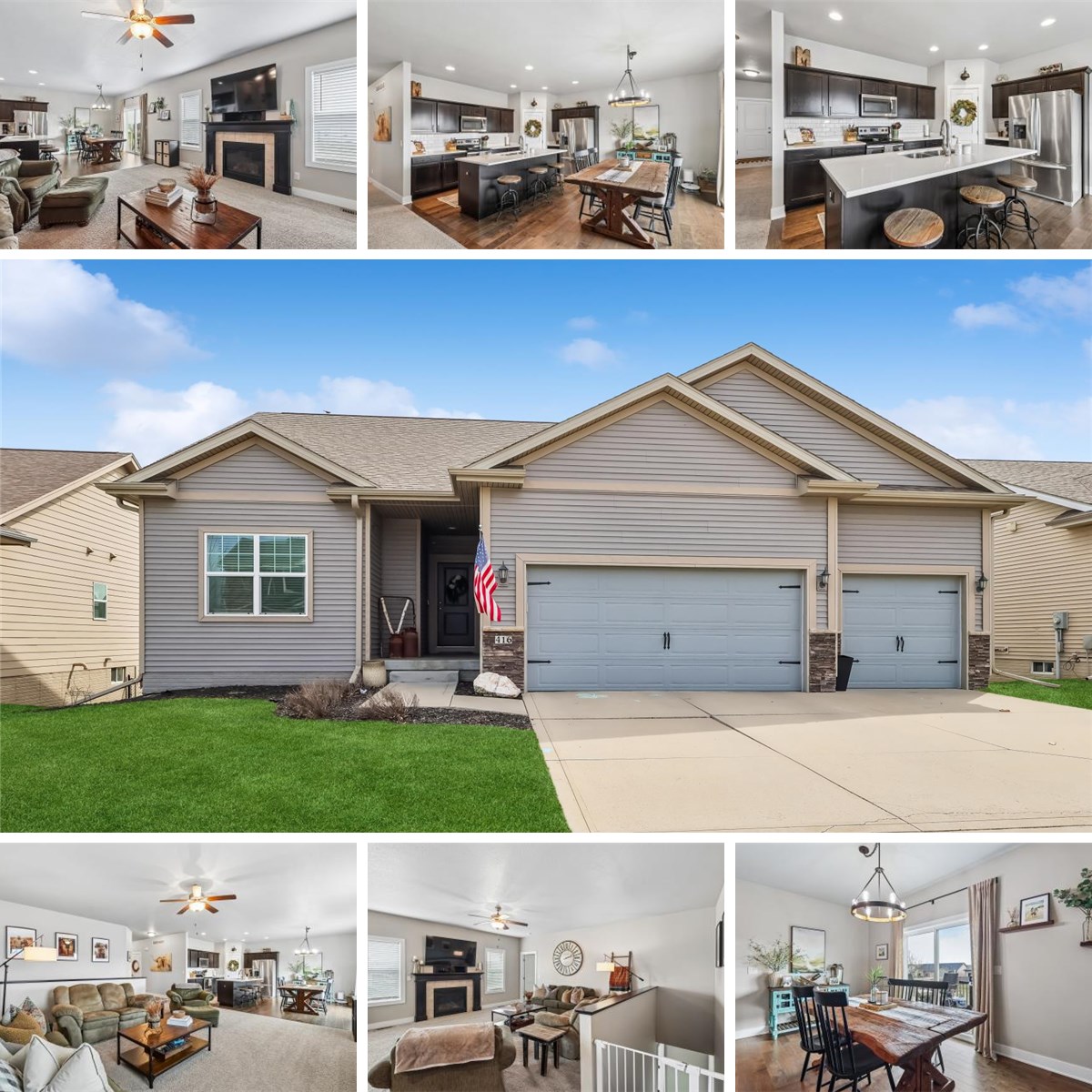 Move in ready walkout Ventura Ranch plan from Destiny Homes, 1669 sq. ft. on the main level, plus over 1000 finished in the lower level, 4 bed 3 bath, three car leading to the family size drop zone. Mocha finish kitchen cabinets with light quarts counter tops and stainless appliances. Finished lower level walkout with dry bar, under cabinet refrigerator, huge family room bedroom and ¾ bath. Tile floor in the laundry and bath areas, Engineered hardwood floor in the kitchen and dinette. Energy Star certified home using 2x6 wall exterior construction techniques. Home backs to a community open space to the South.